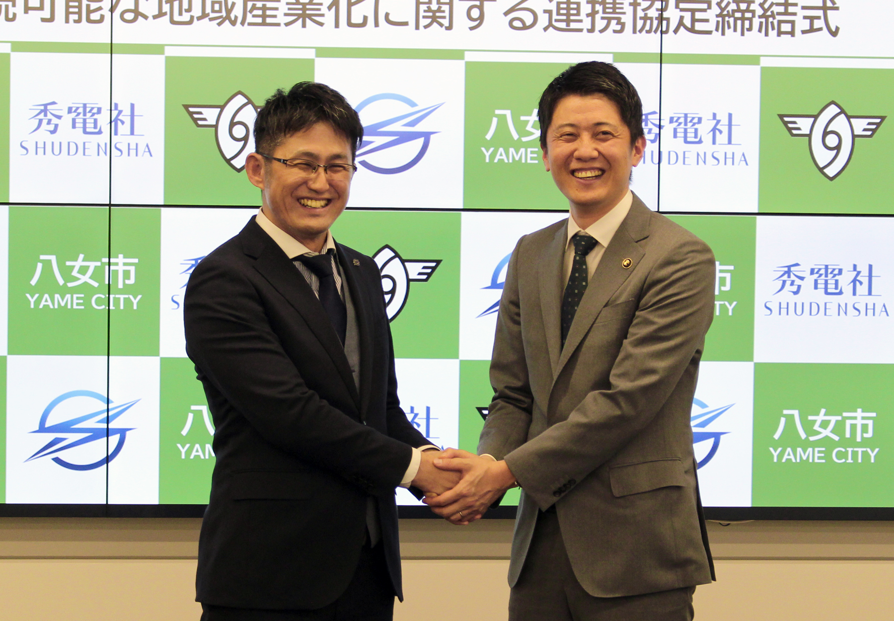 写真右:八女市長 簑原悠太朗氏 この度、八女市と株式会社秀電社は、八女市に内在する竹や廃木材といった未利用資源と、秀電社が保有するバイオ技術およびプラント構築・制御技術を組み合わせることにより、地域の課題にも対応し、地域 […続きを読む]
