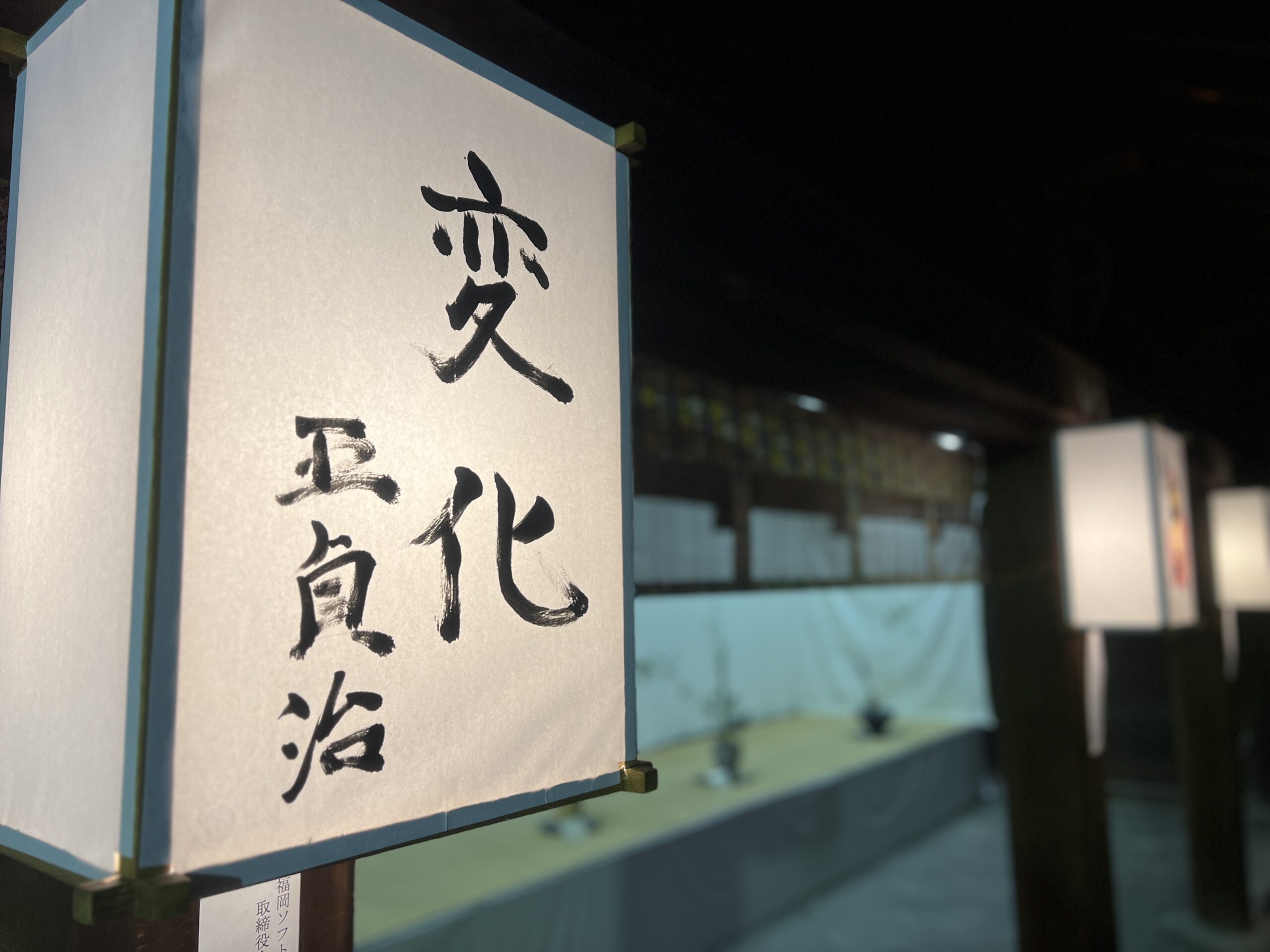 筥崎宮での電気工事実績:清明殿のLED化・放生会詰所整備・楼門拝殿ライトアップ