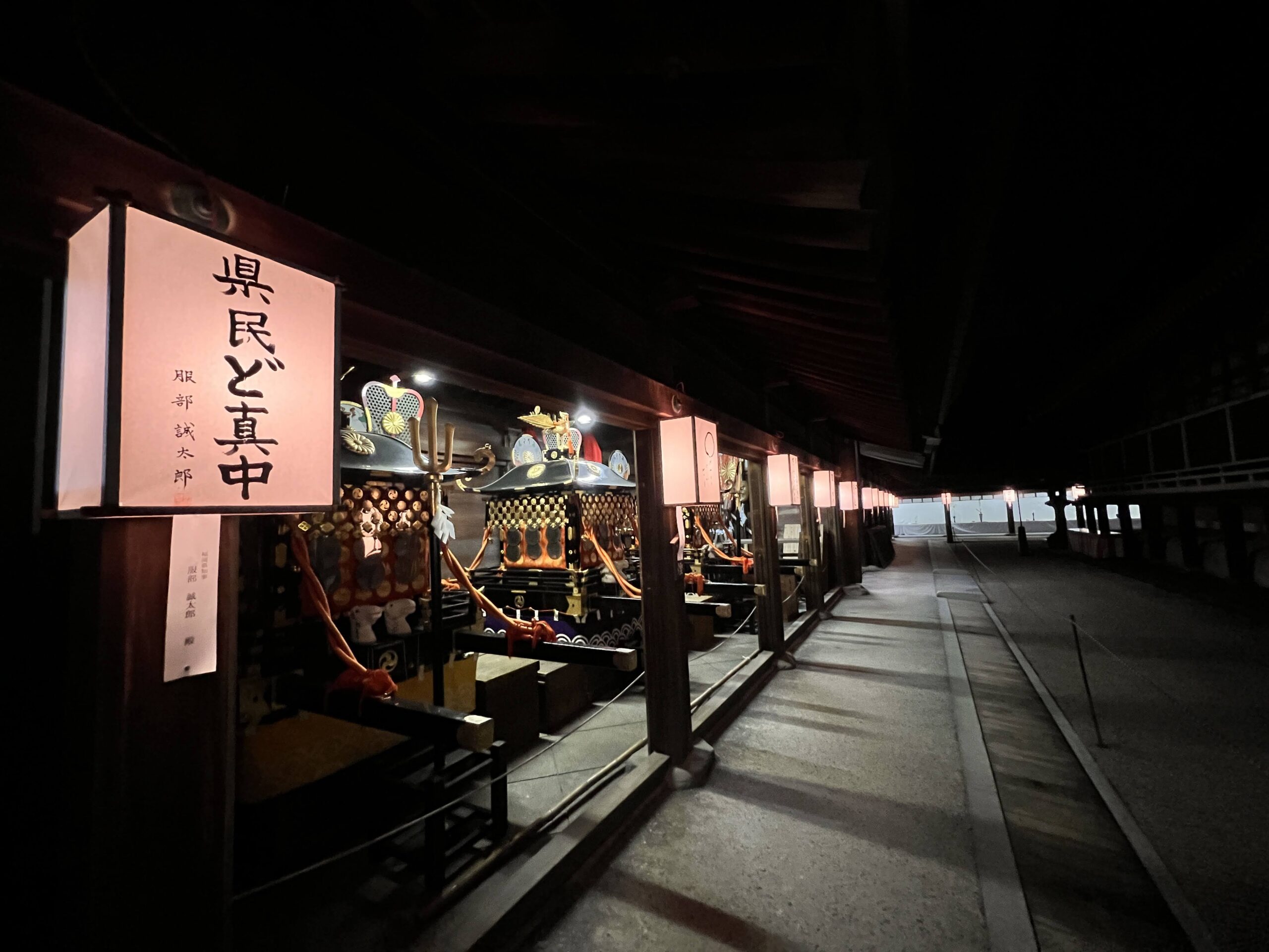 楼門・拝殿のライトアップについては、毎年恒例の保守作業として実施。歴史ある建物の美しさを夜間にも引き立てつつ、参拝者が安心して歩ける明るさを確保しています。